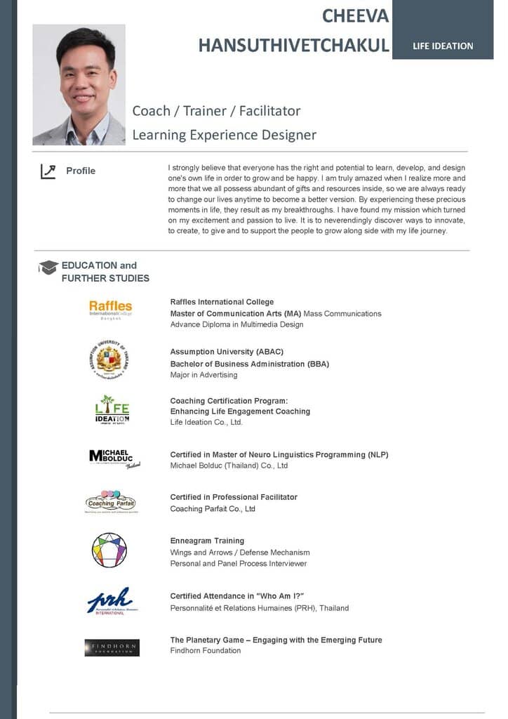 โค้ชเก่ง ชีวา หาญสุทธิเวชกุล มีความสนใจด้านการออกแบบสื่อ และเครื่องมือการเรียนรู้ที่ช่วยพัฒนาคน และได้ฝึกฝนตนเองอย่างต่อเนื่อง จนเป็นโค้ชอาชีพในระดับสากล กับสหพันธ์โค้ชนานาชาติ หรือ ICF และได้การรับรองในระดับ Associated Certified Coach (ACC)