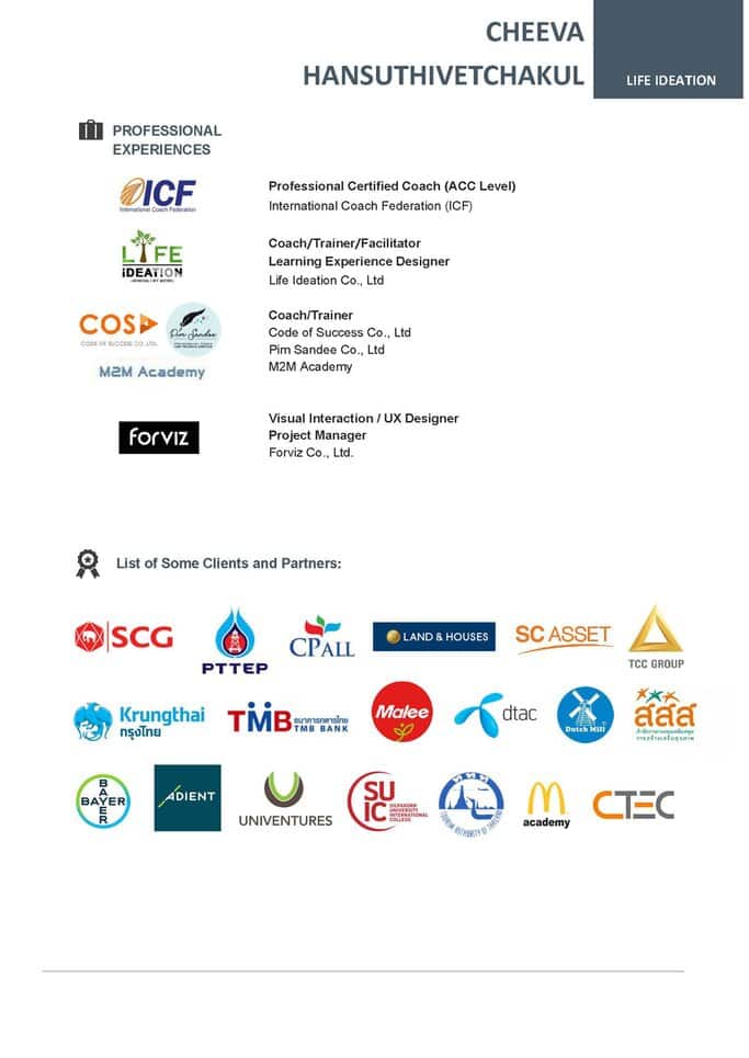 - โค้ชอาชีพ ระดับ Associated Certified Coach ของ ICF